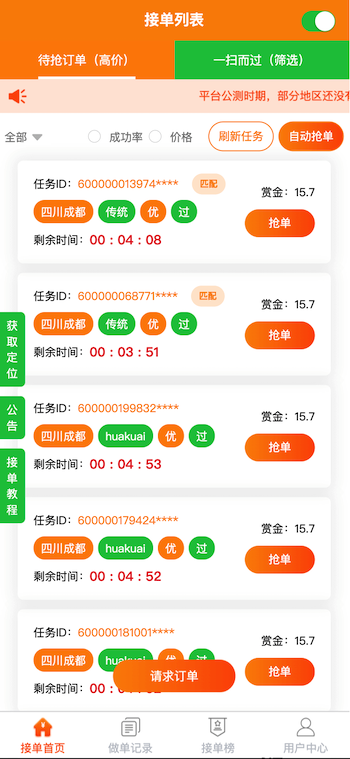 類似“碼幫平臺/FZ輔助/碼力平臺/閃電接單/蜻蜓輔助/雛菊輔助”,第三方微信輔助注冊任務管理平臺——“蜜蜂”任務平臺管理系統,幫助有大量微信注冊需求的商家和想要0元投入月入過萬的兼職人員搭建連通的橋梁。系統由用戶端H5/APP、商家端H5/APP、地推商戶端H5、商家端PC、平臺端PC架構而成,支持用戶隨時提現,支付寶實時到賬,商家端一鍵掃碼下單,方便快捷;系統支撐商家每天10萬+的訂單下發(fā)和用戶隨時隨地搶單,做單,賺取傭金,提現等更多功能。。。